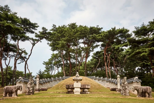 사릉[유네스코 세계문화유산] 조선 왕조 시대 때 가장 비운의 여인으로 꼽히는 단종(端宗)의 비(妃)인 정순(定順) 왕후(1440∼1521년)는 1453년 왕비로 간택되었으며 2년 뒤 단종이 왕위에 오르자 의덕(懿德) 왕대비에 봉해졌다. 하지만 1457년 단종은 노산군(魯山君)으로 강등되어 영월에 있는 유배지로 보내지고 정순 왕후도 부인으로 강봉된다.평생을 청빈(淸貧)하게 살다간 정순 왕후는 죽어서도 여인네들의 한을 달래는 토속신으로 숭앙되었다. 왕후가 자식이 없었으므로 단종의 누이인 경혜공주가 무덤을 만들었고, 숙종 24년(1698)에 단종이 왕으로 복위 되면서 정순왕후라 봉해졌고 왕후의 무덤을 사릉이라 했다.